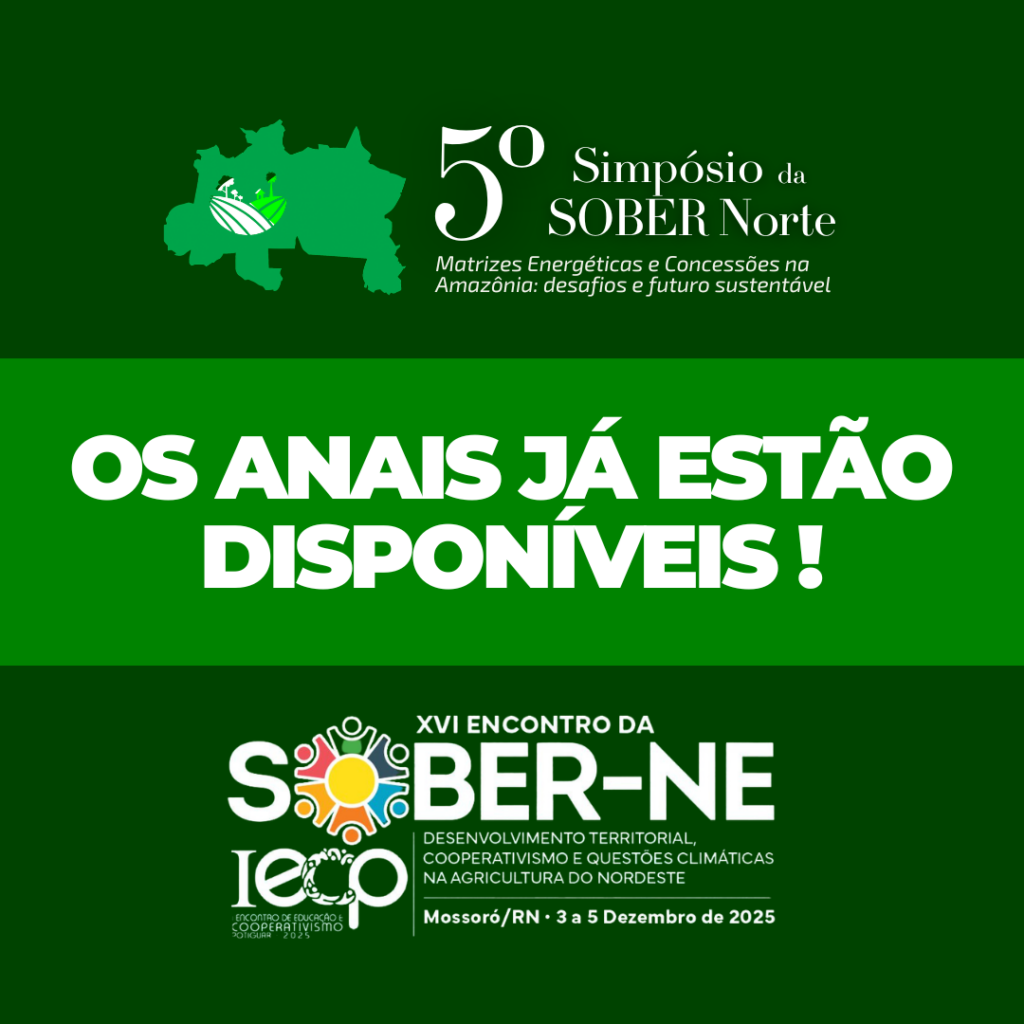 Os encontros regionais da SOBER realizados em 2025 já têm seus Anais disponíveis. As publicações reúnem a produção científica apresentada nos eventos ocorridos nas regiões Norte e Nordeste do Brasil, registrando pesquisas e debates sobre economia rural, desenvolvimento regional, sustentabilidade, cooperativismo e políticas públicas.