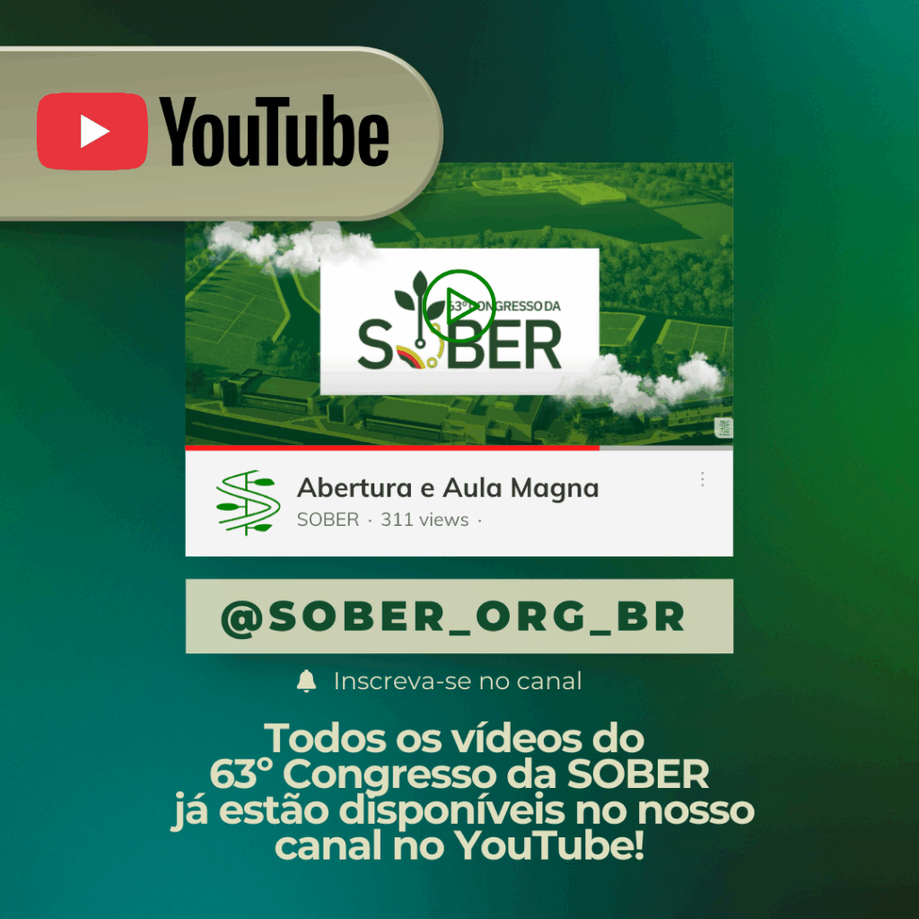 A publicação de todos os vídeos completos do 63º Congresso da SOBER reforça o compromisso da sociedade científica em ampliar o acesso ao conhecimento, permitindo que cada debate, cada análise e cada reflexão chegue a um público cada vez maior. Mais do que compartilhar informações, a SOBER promove uma plataforma de aprendizagem contínua, incentivando pesquisadores, profissionais e estudantes a se engajarem com os temas centrais da economia, administração e sociologia rural, inspirando novas ideias e fomentando a inovação.